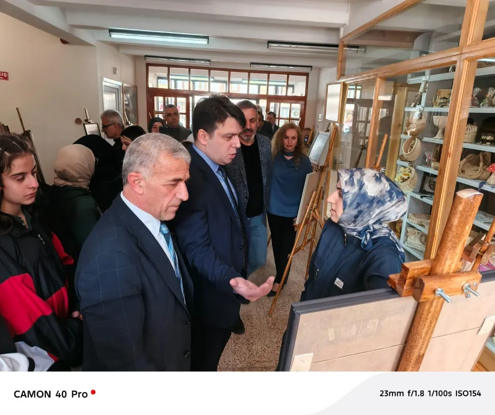 Sergi Açılışı Kaymakam vekili Ustaoğlu ve Protokol tarafından gerçekleştirilirken Kaymakam Ustaoğlu ve Başkan Tok kursiyerler ile sohbet ederek üretilen ürünler ile ilgili bilgi aldı.