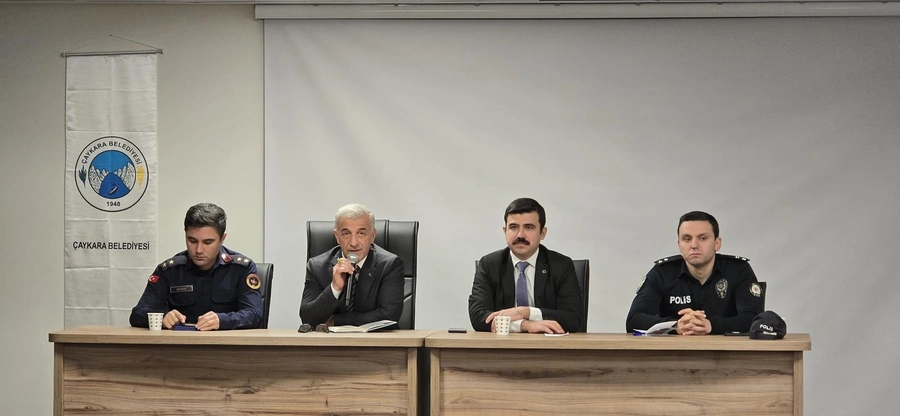 Çaykara Kaymakamı Ali Sapmaz’ın başkanlığında gerçekleştirilen toplantıya Çaykara Belediye Başkanı Hanefi Tok,Çaykara İlçe Jandarma Komutanı Üsteğmen Emre Can Narin,Çaykara İlçe Emniyet Amiri Komiser Alparslan Albayrak,Çaykara Muhtarlar Derneği Başkanı Naci Keleş ve Yönetim Kurulu üyeleri ile Kurum Amirleri ve Mahalle Muhtarları katılım sağladılar.