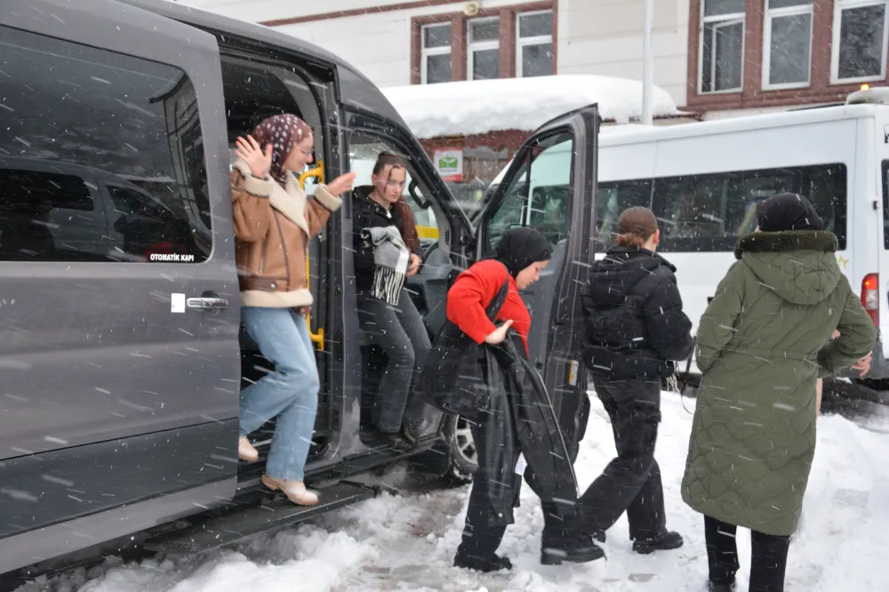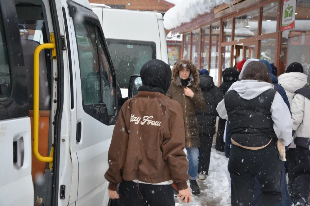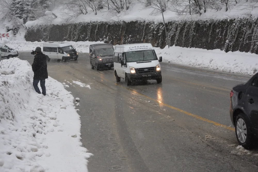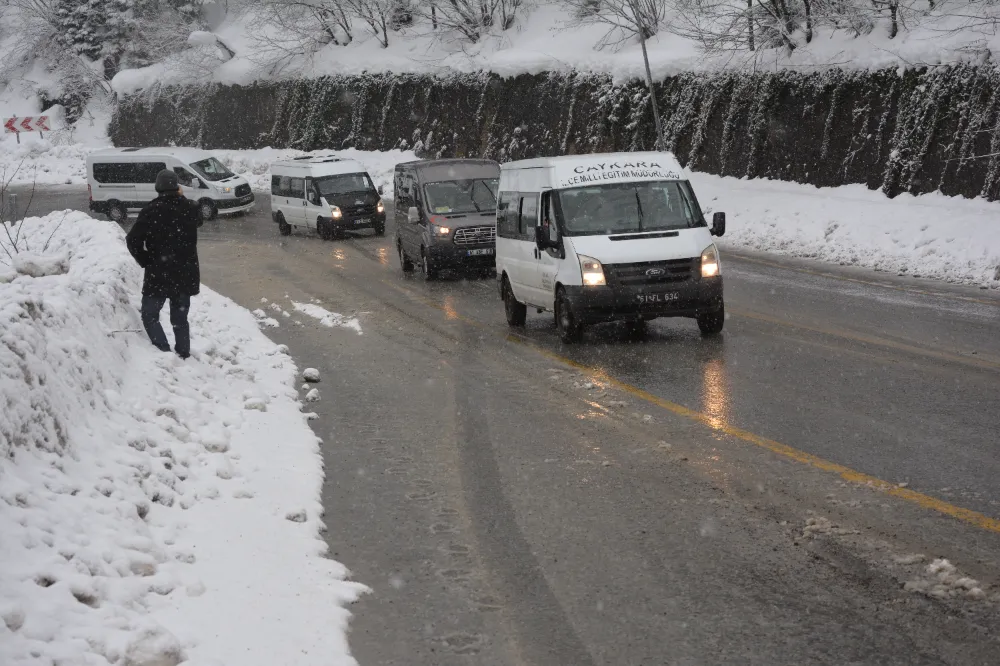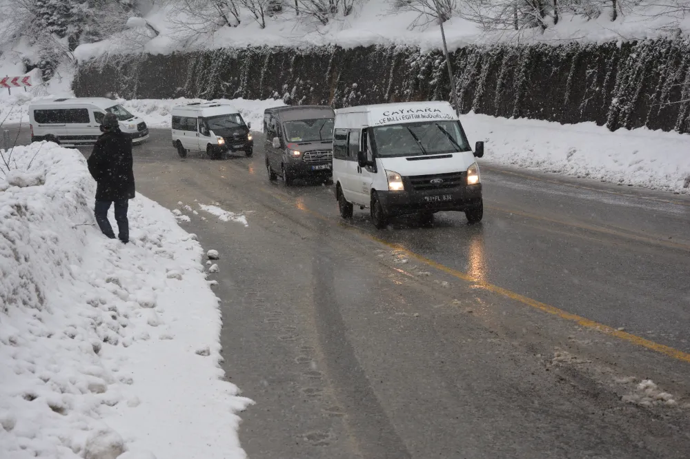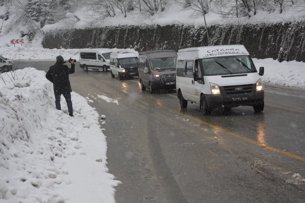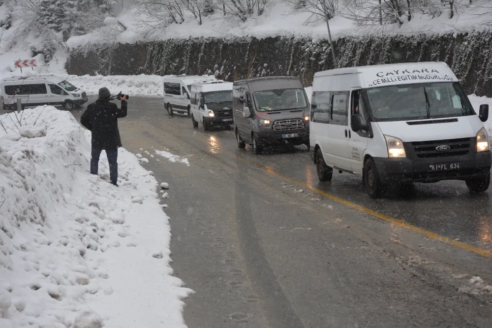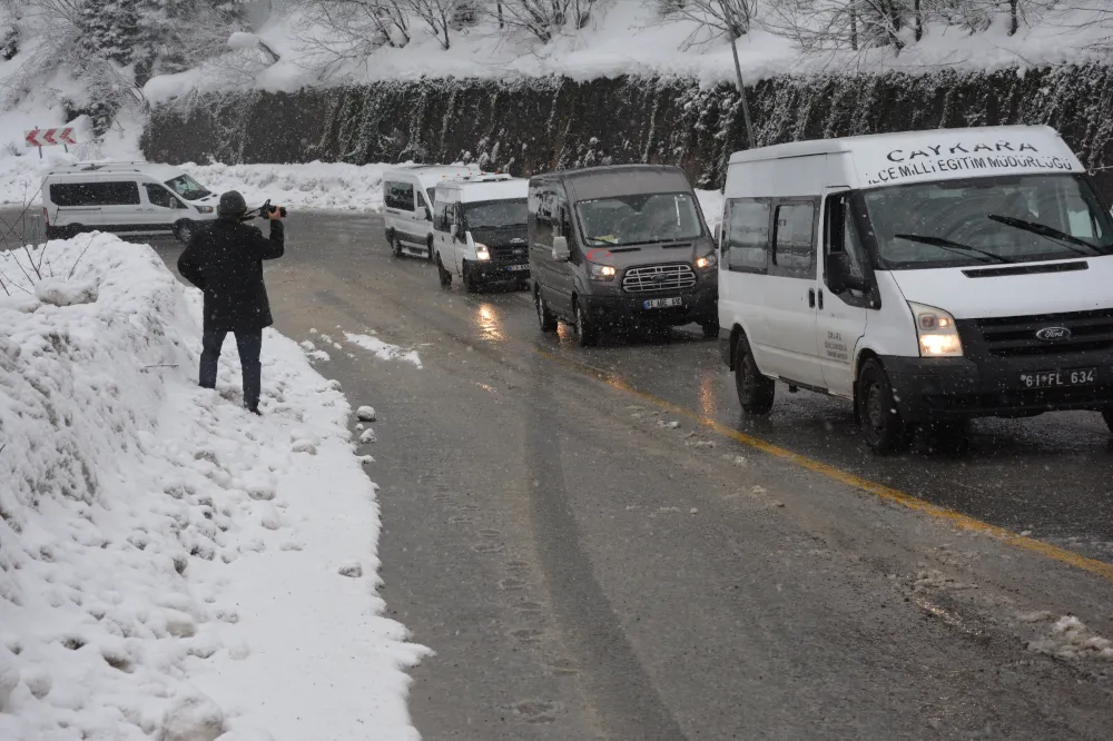 Ancak Çaykara Kaymakamı Ali Sapmaz öğrenciler için Karayolları 10.Bölge Müdürlüğü Çaykara ekibi ile iletişime geçerek devam eden kar yağışında yolun açık olması talebinde bulundu.