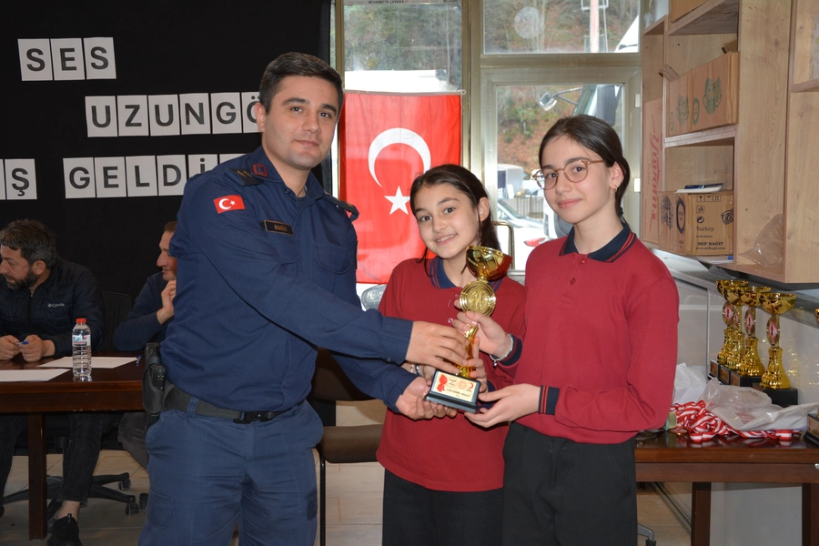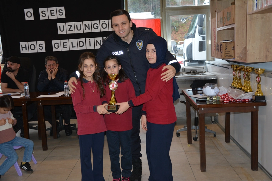 Yarışma sonunda dereceye giren öğrencilere kupa ve madalyaları Kaymakam Sapmaz ve protokol üyeleri tarafından takdim edildi.