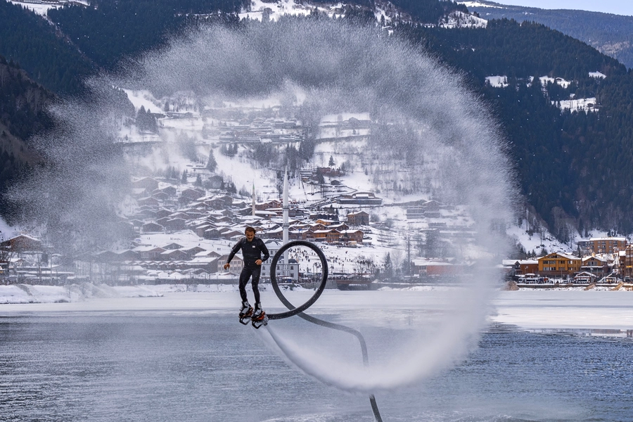 Bu kare, Uzungöl’ün kış ruhunu tek bir ana sığdırmayı başarmış çok güçlü bir anlatı sunuyor. Donmuş gölün üzerinde yükselen sporcu, insan iradesiyle doğanın sert ama büyüleyici koşulları arasındaki dengeyi simgeliyor. Su ve karın havada oluşturduğu kusursuz daire, fotoğrafa neredeyse masalsı bir çerçeve kazandırırken; arka plandaki Uzungöl silueti, mekânın kimliğini güçlü biçimde hissettiriyor. Hareket, cesaret ve estetik aynı anda izleyiciye geçiyor; bakıldıkça durmayan, yaşayan bir kare.